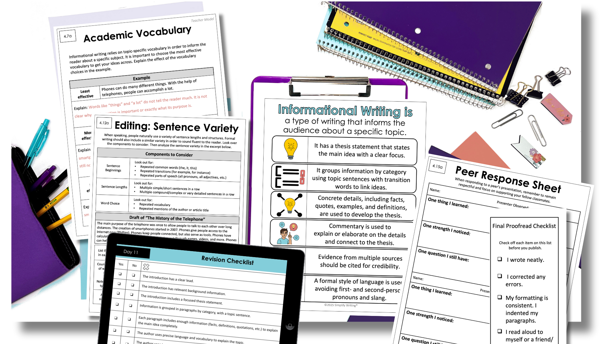 Simplify Writing’s skill-based pre- and post-assessments provide teachers with meaningful, actionable data that traditional rubrics often miss.